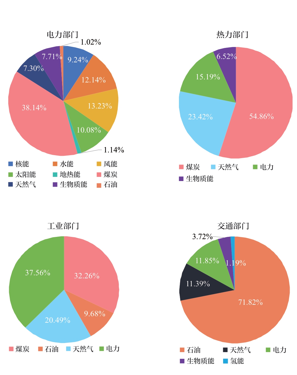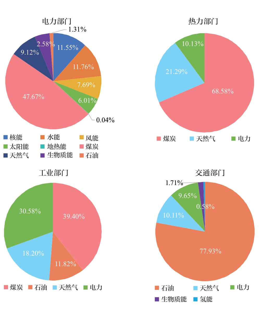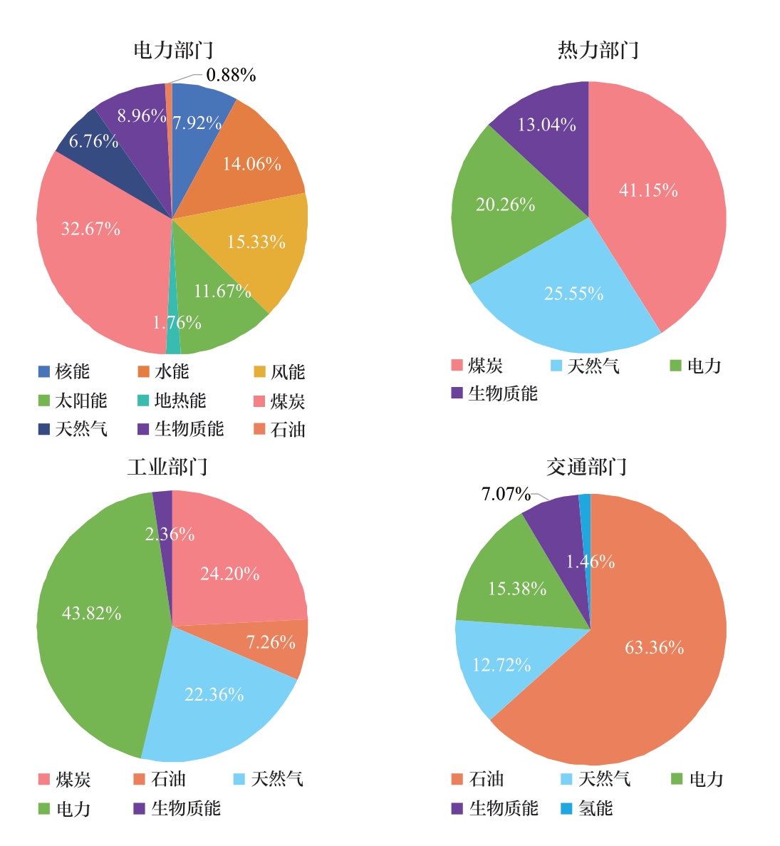 Fig. 5 Composition of energy consumption mix of multisectors under low-carbon path in 2030