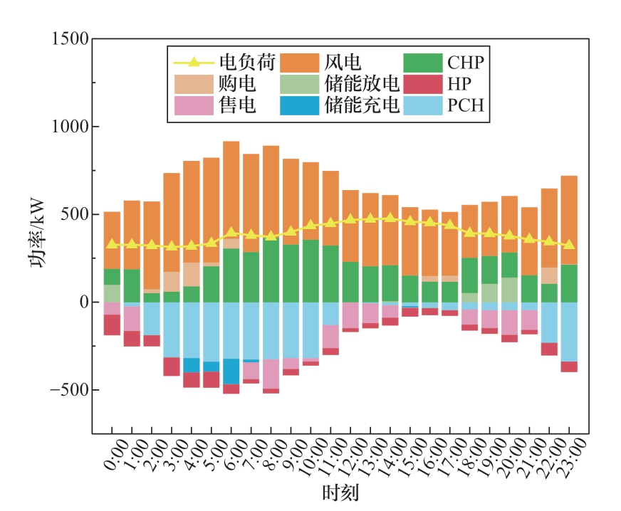 1) 在低碳设备模型构建方面,提出了基于P2GCCS-HFC的PCH联合模型,能调节氢能分配率以更好地平衡减碳能力与能源的高效供应能力;