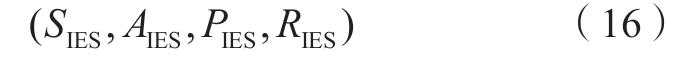 式中:SIES为智能体获取的IES环境信息(即为状态空间);AIES为智能体所采取的动作策略(即为动作空间);PIES为IES环境根据智能体采取的动作策略进行的状态转移,本文中该状态转移是通过与历史数据交互间接获得,无需进行显式表达;RIES为IES环境根据智能体动作后得到的奖励 (即为奖励函数),用以评估动作的价值。