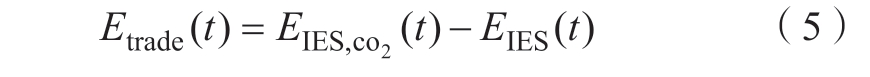 综合能源系统中赋予产能设备碳排放配额,当系统具有多余碳排放配额时可通过碳配额交易实现减排效益经济化,当碳排放超额时,以经济成本为代价购买碳排放配额。通过碳交易过程促进综合能源系统主动降低碳排放以实现更大的经济效益。