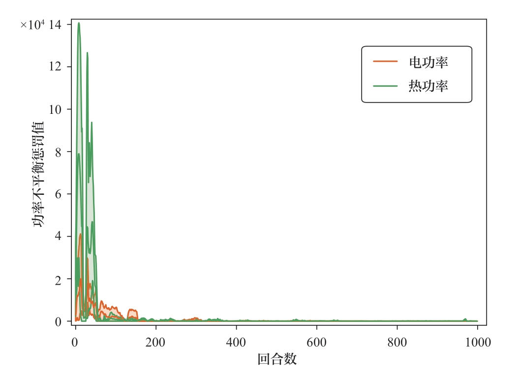 但在实际应用过程中,能源供需会存在不平衡度,缘于智能体的动作虽然能够满足设备本身的相关约束,但对于多个动作共同决定的供需平衡约束仍然可能存在越限问题。因此需要进一步设计功率不平衡惩罚项uun(t)来量化其违反平衡约束的程度,其表达式为: