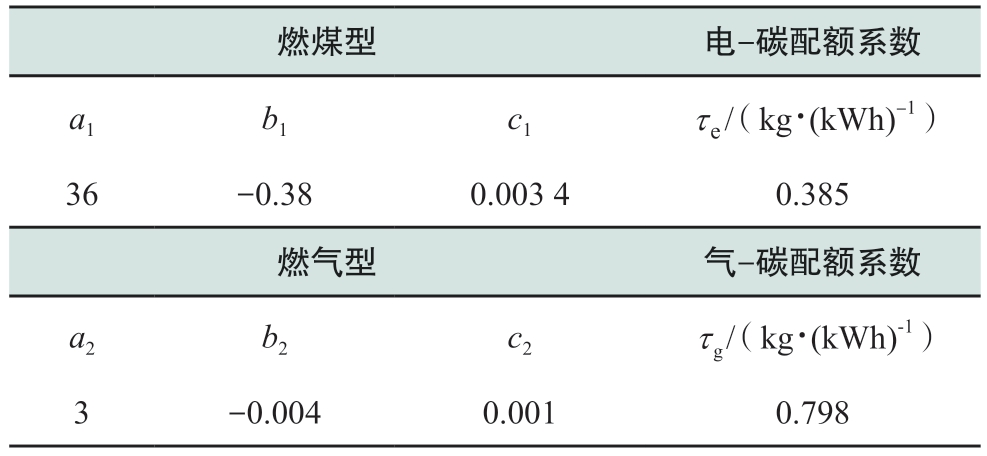 碳排放配额的初始设置主要考虑:通过燃烧天然气获得二次能源的CHP设备以及上级电网生产电能的火电厂燃煤机组。因此,可将综合能源系统中的碳排放配额表达式写为