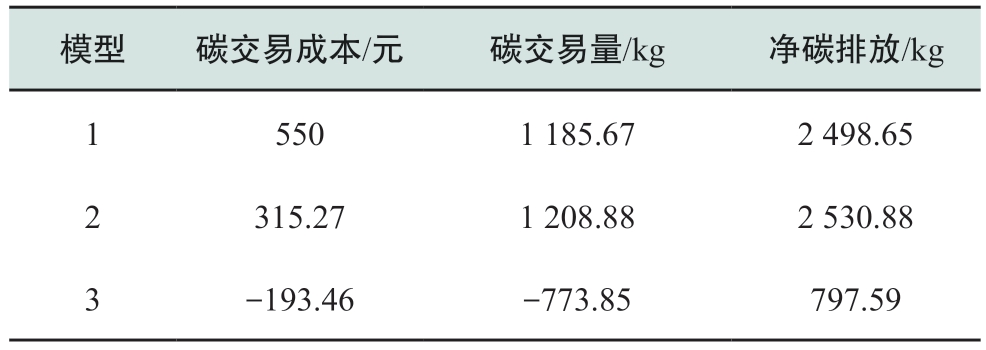 模型 碳交易成本/元 碳交易量/kg 净碳排放/kg 1 550 1 185.67 2 498.65 2 315.27 1 208.88 2 530.88 3 -193.46 -773.85 797.59