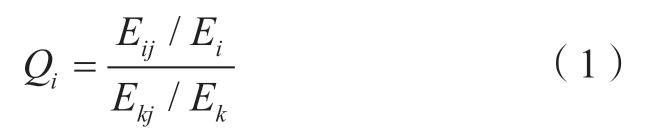 式中:Eij指较小的i地区j产业的总规模;Ei指i地区的总规模;Ekj指国家或较大的区域k产业j的总规模;Ek指国家或区域k的总规模。公式中总规模可以选择工业总产值、工业增加值、企业数量、销售收入、从业人员数量等指标。