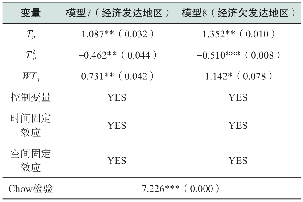 本文研究电力集聚对能源转型的影响机制,考虑2个假设:一是电力集聚存在空间效应,且电力传输跨区域,影响能源产业发展;二是电力集聚对能源转型的影响非线性,可能存在最优集聚水平[33]。因此,引入电力集聚的二次项,建立计量经济模型。