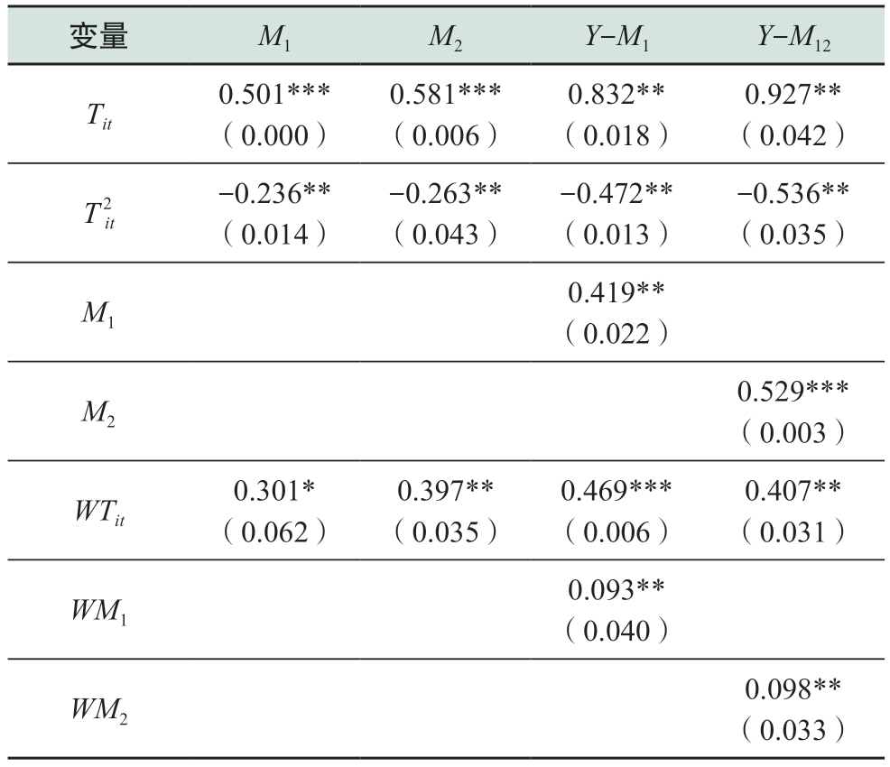 本文为进一步探究电力集聚对能源转型的影响路径,引入中介效应模型进行分析。结合前文空间回归模型,所建中介效应模型如下: