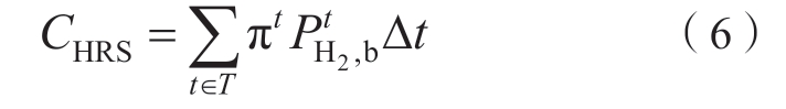 IES的目标函数为运行成本Copr减去与加氢站交互收入CHRS,其中运行成本Copr包含与主网购售电成本Cgrid、机组燃料成本Cfuel和储能系统退化成本Cbattery。