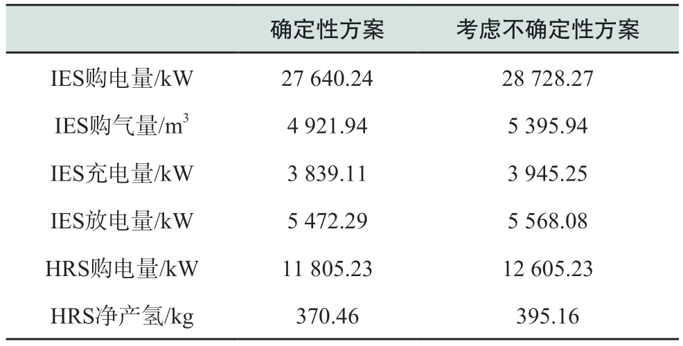 本文研究中的不确定性相关参数是从整体角度进行分析的,并且这些参数在电源和负荷中的设置都是一致的。在调度策略的实际实施中,IES和HRS可以根据自身情况选择合适的不确定性参数,灵活调整调度策略,实现收益与风险的平衡。