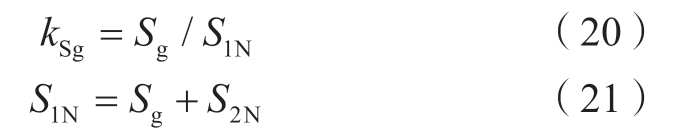 现将换流器1、换流器2、同步机的容量分别记为S1N、S2N、Sg,用kSg表示同步机容量占换流器1容量的比例后,三者之间满足: