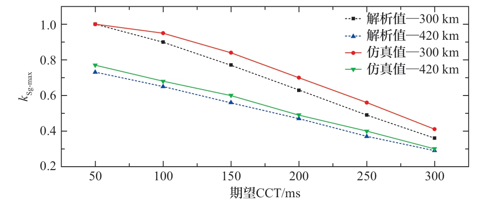 过大的同步机容量占比kSg对Lyapunov暂态稳定边界及故障暂态过程均有恶化作用,因此在不同期望CCT下,能使系统保持同步稳定的同步机最大容量比例kSg-max将随着期望CCT的增大而减小。