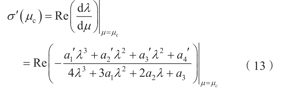 其分岔点处横截系数的计算如式(13)所示。