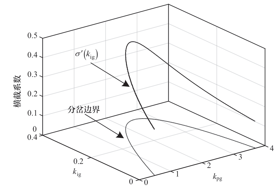 计算分岔点对应的横截系数,结果如图7所示,由图可知,机组横截系数始终大于0,分岔类型始终为亚临界分岔,即当kig越过分岔点时,机组将从平衡状态直接进入一个发散振荡状态。