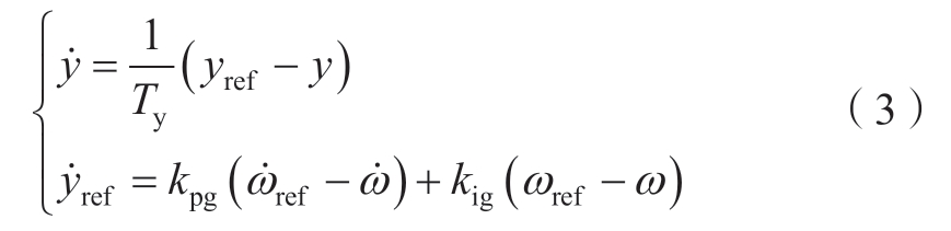 机组的机械子系统包括调速器及转子运动方程。在功率优先控制中,调速器控制框图如图2所示,其通过伺服电机控制导叶开度来实现机组转速的调节。调速器的状态方程如式(3)所示[33]。
