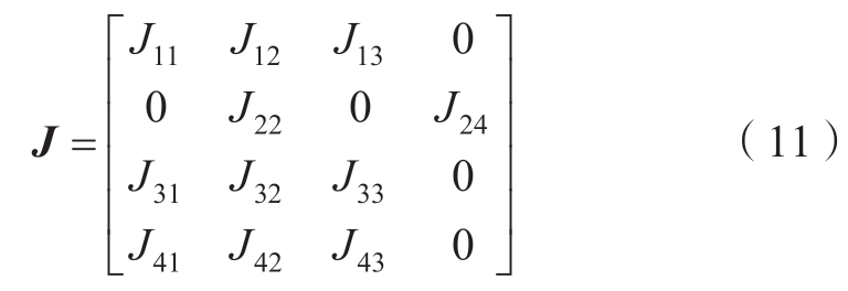 将机组在S点附近线性化,并求出状态方程在该点处的雅可比矩阵J如式(11)所示。
