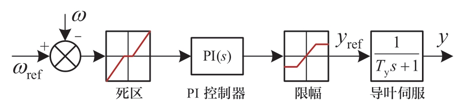 式中:Ty代表导叶动作时间常数;kpg与kig代表调速器控制参数。