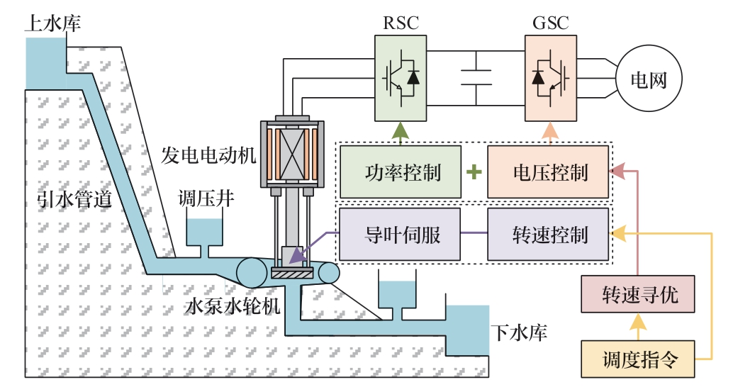 新能源的大量并网对储能设备提出了更高的要求[1-2],而抽水蓄能作为技术成熟、经济性好的储能技术[3-4],成为了提升新能源消纳率,保障电网安全稳定性的关键设备[3]。其中,又以全功率变速抽蓄机组运行模式最为灵活,整体性能最为优异,进而成为国家大力扶持的对象[7]。