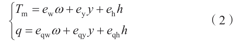 式中:ω为机组转速的偏差量;Tm为机组机械转矩的偏差量;y表示导叶开度的偏差量;ew、eh、ey、eqw、eqh、eqy分别代表水泵水轮机的6个传递系数。