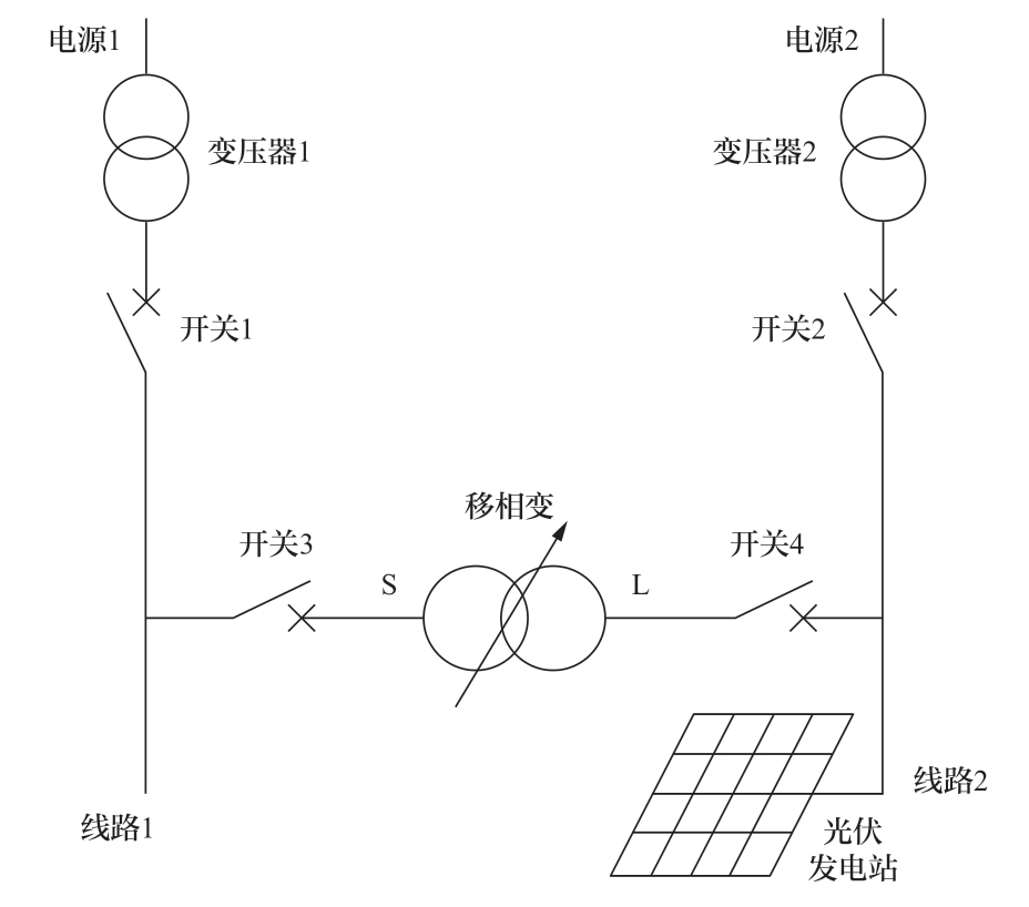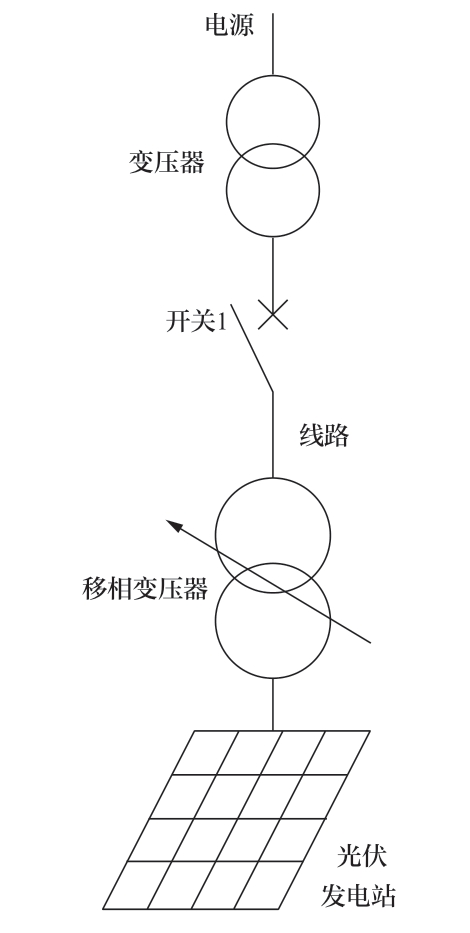 此时将移相变压器接入光伏发电厂出口的线路中,见图7。通过移相控制器的自动调节,可以在即保证光伏发电厂附近普通用户电能质量的条件下,又将光伏发电厂的所发电能完全输送至电网。