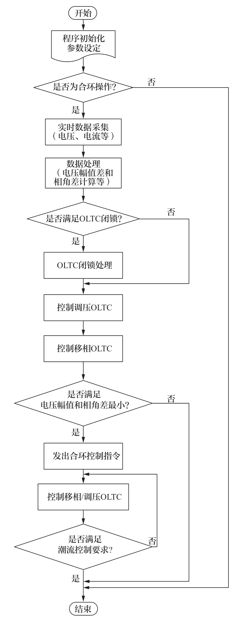 如果不满足式(2),则控制移相OLTC调节U2∠Φ2,直到相角差满足式(2);