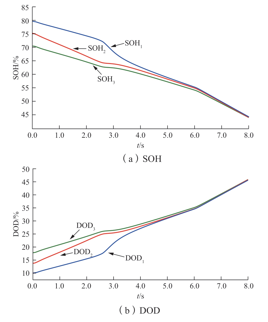 结合式(3)—(4)可知,锂电池组的SOH与DC/DC变换器输出的有功功率Pi有关,通过调节Pi可影响SOH值。