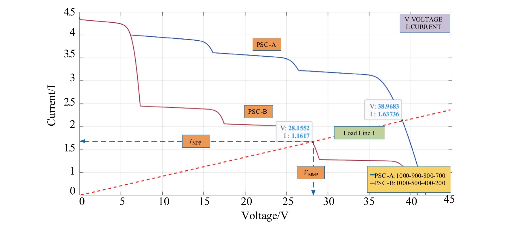 Fig.5.The I-V curve response to different load conditions.
