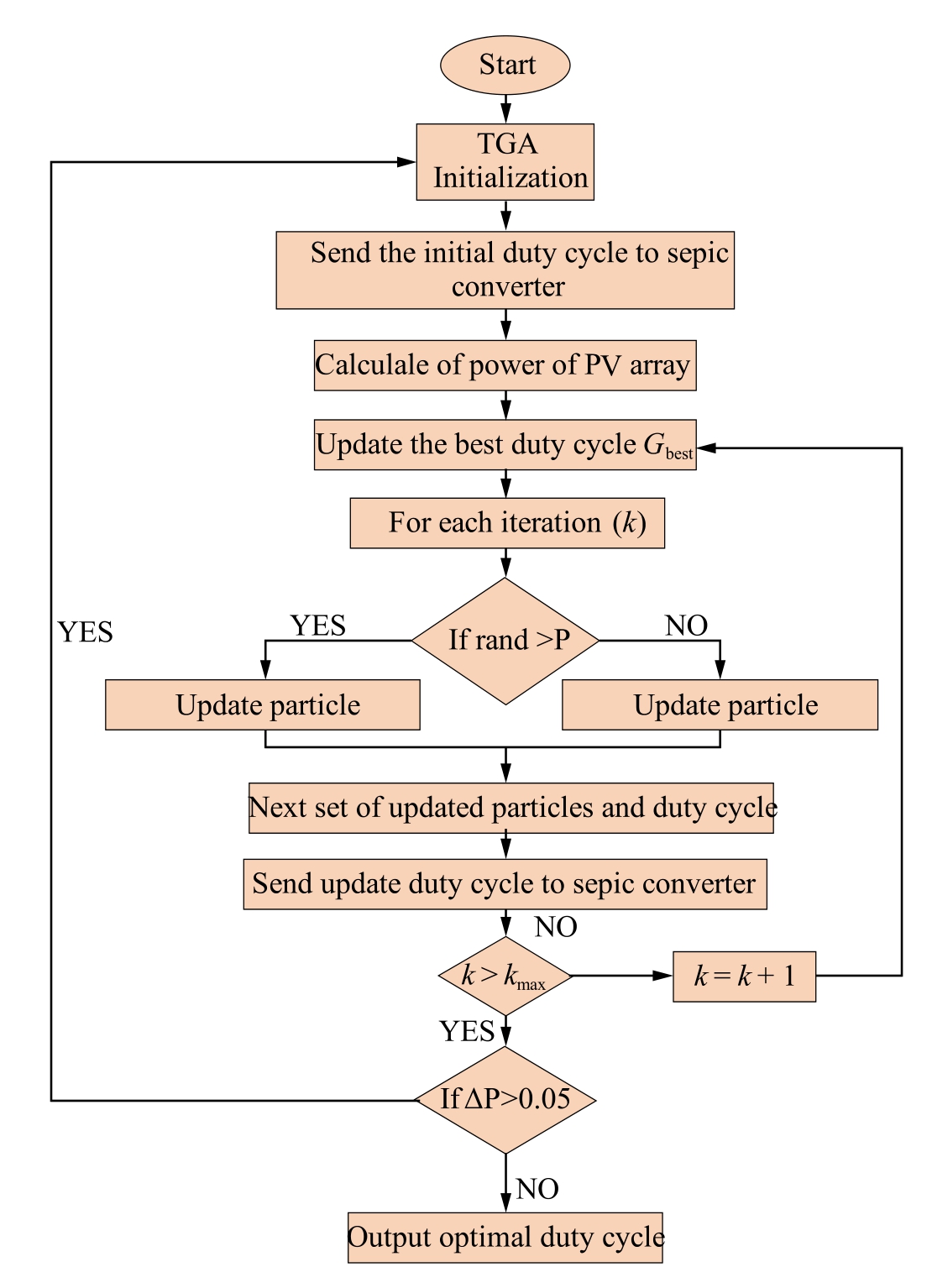 The substitution process evaluates the player performance at the end of each iteration by replacing a player whose profile remains constant or does not improve.TGA was used to optimize power extraction from the PV array,as shown in Fig.6.