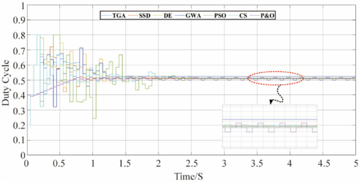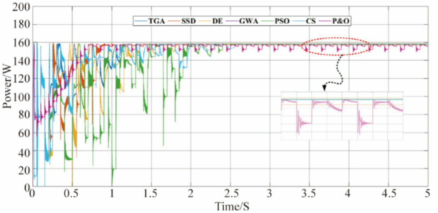 Table 3 Tuning parameters of PSO, GWA, DE, TGA, SSD, CS, and P&O.