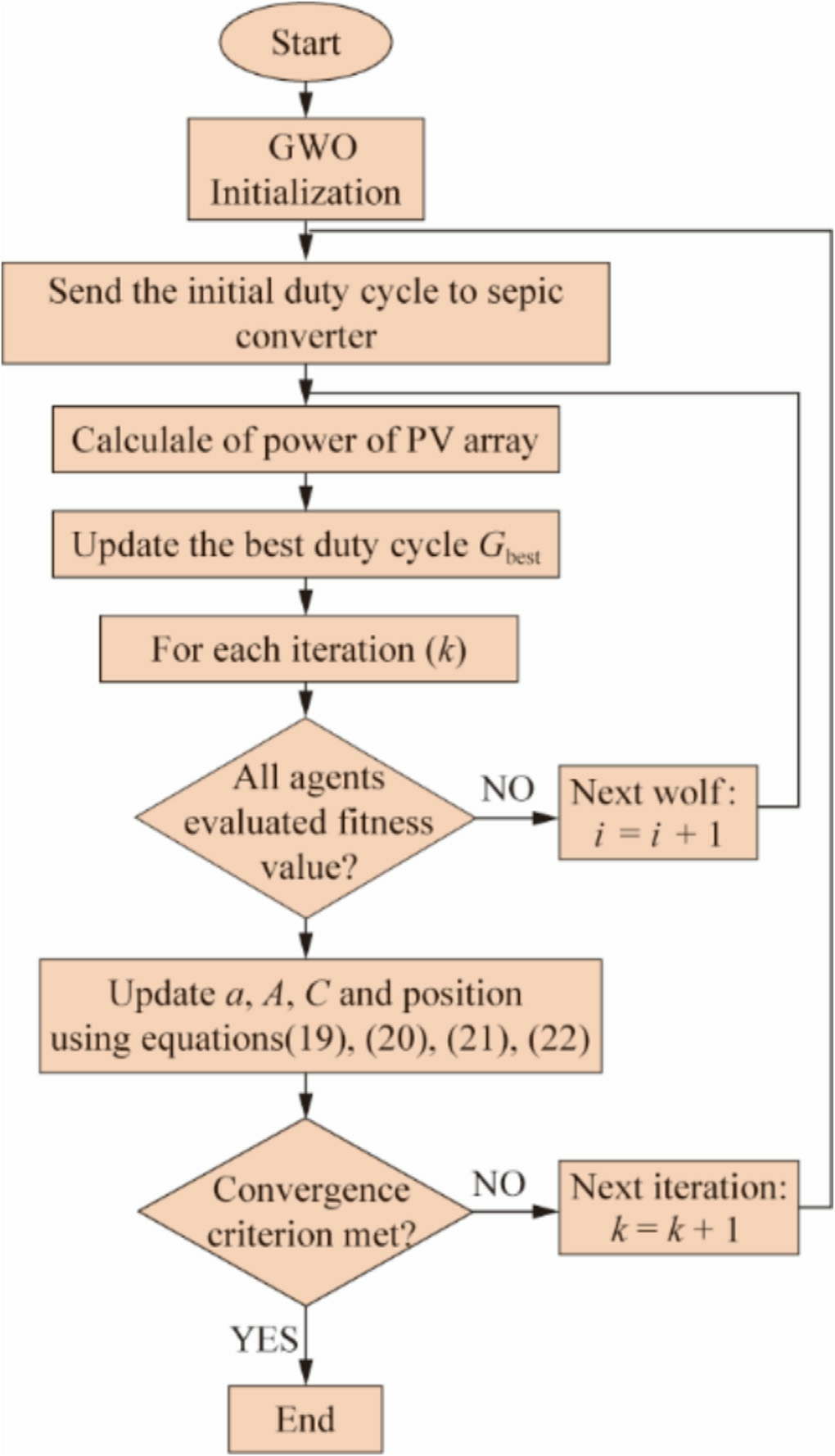 Fig.9 depicts a flowchart of the MPPT algorithm using the GWO approach.
