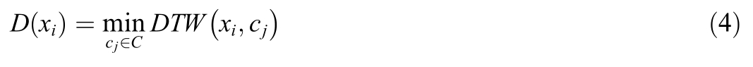 Subsequently, for each sample, xi, we calculated its DTW distance,DTW(xi,cj),from all the k centers of mass,and assigned it to the cluster represented by the center of mass with the smallest DTW distance [35].For each cluster,its center of mass is updated to be the median of all the samples within the cluster to reduce the influence of outliers and preserve the temporal morphological features.