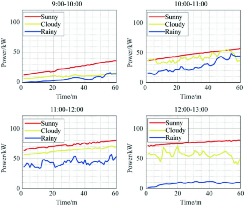 Fig.4 depicts the plot results of K-means++ based on the DTW meteorological clustering of the output power for different time periods in February 2020 for a PV plant in Arizona with a rated capacity of 100 kW.For ease of viewing, only a portion of the sample is depicted.