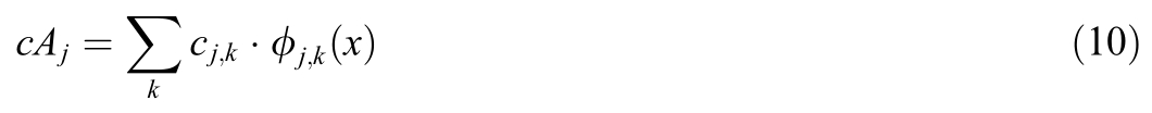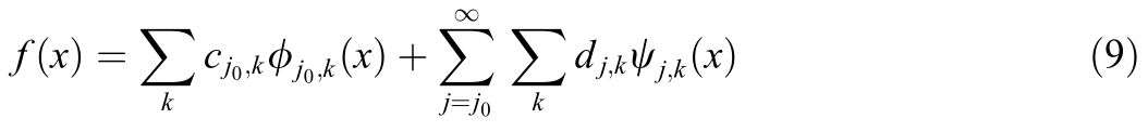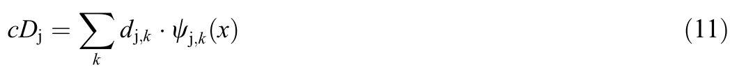 where j0 denotes an arbitrary starting point, ϕj,k(x)denotes the scale function, ψj,k(x) denotes the wavelet function, cj,k denotes the approximation coefficient, and dj,k denotes the detail coefficient.