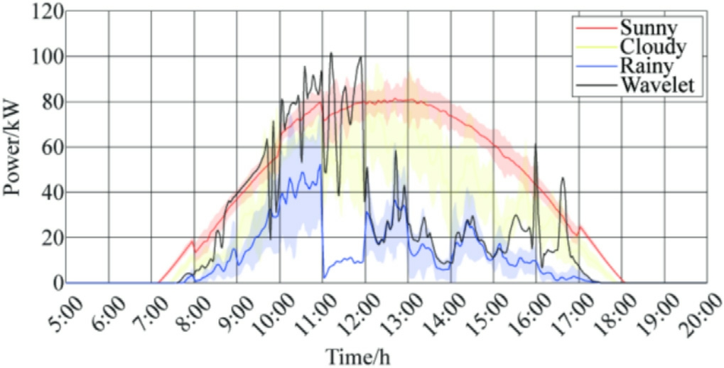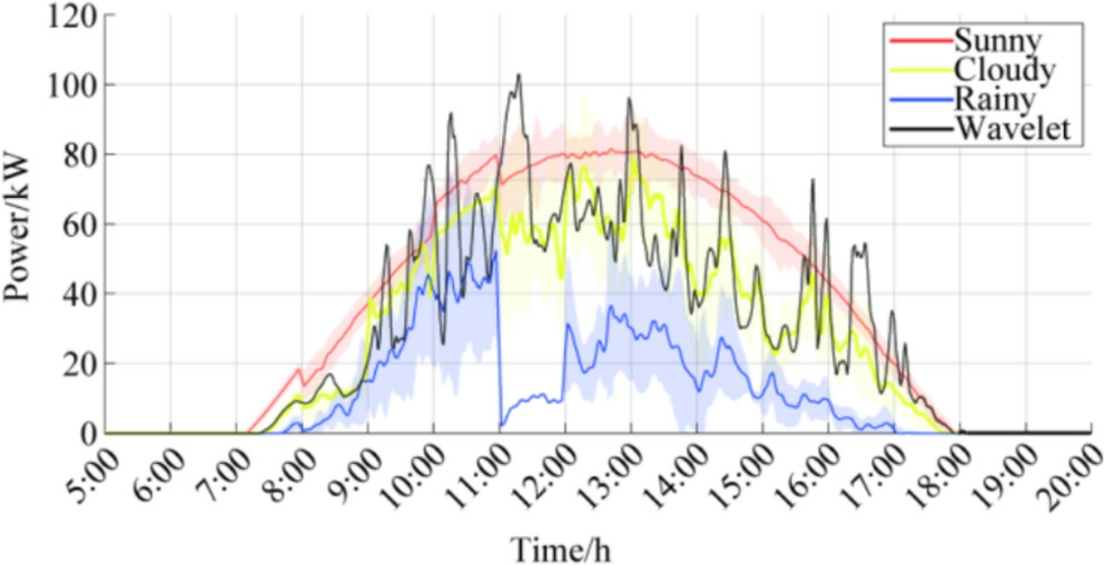 Lastly,the daily power curves obtained from its wavelet decomposition are compared with the typical weather power curves formed by clustering for that month.Furthermore, we established a probability model to analyze the approximate weather types for each time period,thereby providing an Optimization method for the control strategy of PRRC.