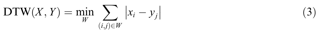 K-means is a feasible clustering algorithm that can be used to group PV power time periods.However, each power curve sample is a time series,and the center of gravity must capture the dynamic pattern of the series,instead of the static position.Therefore, we considered the dynamic time-regularized DTW method to obtain the center of mass curve reflecting the power fluctuation in each time zone.DTW can be used to overcome the problem of phase shift of the PV power curves due to sudden weather changes (e.g., delayed power dips due to cloud movement).DTW can eliminate the time axis offset through nonlinear alignment, and can be applied to the time series similarity metrics of different lengths and shapes.Given two time series X and Y, the optimal path can be solved using DTW,which is defined as follows[33]:
