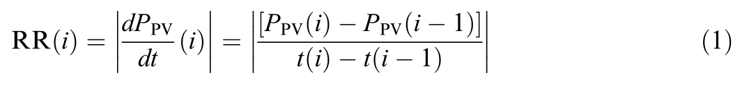 For example, the most recommended RR limit for PV plant operators internationally is 10% of the rated PV capacity per minute to overcome the limitations of PV fluctuations on the utility grid.The commonly used RR limit for instantaneous ‘i’ PV output power is expressed as follows: