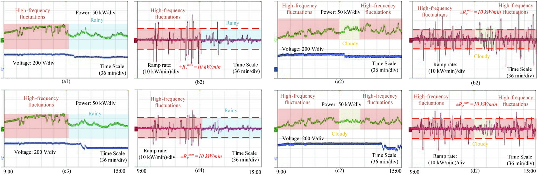 Thus, the experimental results are cross-validated with the above analysis, thereby demonstrating the importance of the proposed methodology for optimizing the PRRC control strategy, as explained in the introduction.Additionally, the experiment employed the international RR limiting criterion of 10% to evaluate the APC performance.The experimental test period lies between 9:00 and 15:00 (February 23th and 28th, 2020, Tucson, Arizona),when the ramp events were concentrated and accelerated 30 times to reduce the waiting time.
