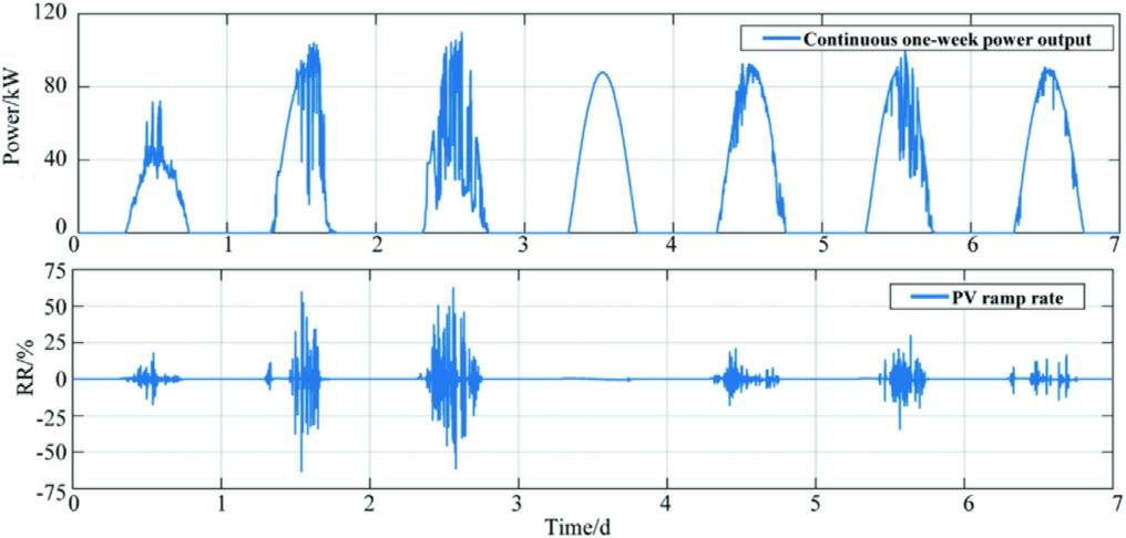 PV systems present a considerable risk to the long-term stability of the grid operation as a representative of the new energy that gains access to the power system through the intermittent fluctuations in the output power [36].These systems are typically used in the energy storage system, PPRC, and other RR control strategies to reduce the limitations presented by the fluctuations [37].Furthermore,changes in the external environment caused by fluctuations in the PV output power hinder the comprehensive analysis of the power RR control strategy.Obtaining a better understanding of the time period and the weather conditions can help in developing more effective countermeasures.