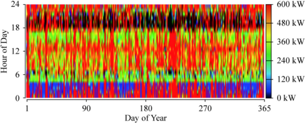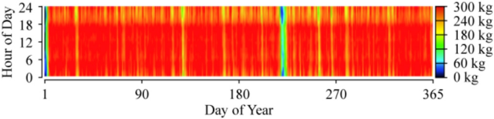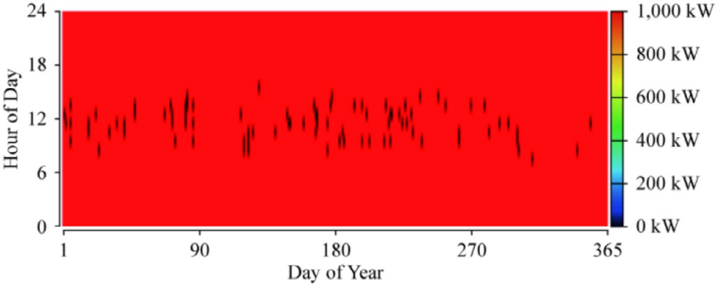 In this study, we employed an electrolyzer with a lifetime of 15 years,an efficiency of 85%,and a minimum load ratio of 0%.We considered four electrolyzer capacities:0 kW, 300 kW, 600 kW, and 900 kW.The optimization results determined that a 600 kW electrolyzer is the optimal choice for this case.Additionally, we employed a hydrogen storage tank with a lifetime of 25 years.We analyzed various tank sizes, including 0 kg, 200 kg, 300 kg,and 400 kg, with optimization identifying 300 kg as the most suitable size.Furthermore, we integrated a fuel cell with a capacity of 100 kW, a lifetime of 15,000 h, and a minimum load ratio of 0% into the system, as shown in Table 2.